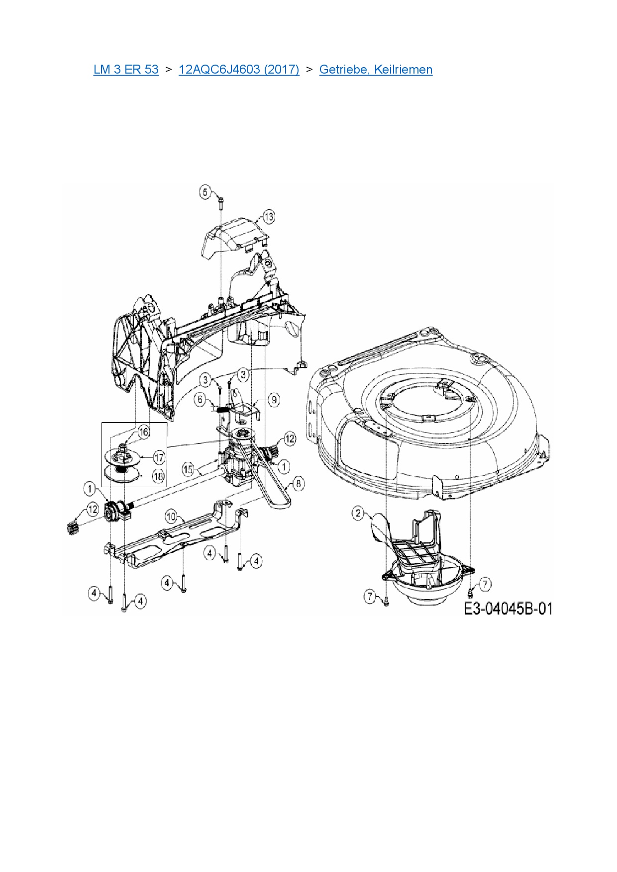 Ersatzteile für Motormäher mit Antrieb Cub Cadet LM 3 ER 53 aus der Zeichnung Getriebe, Keilriemen: