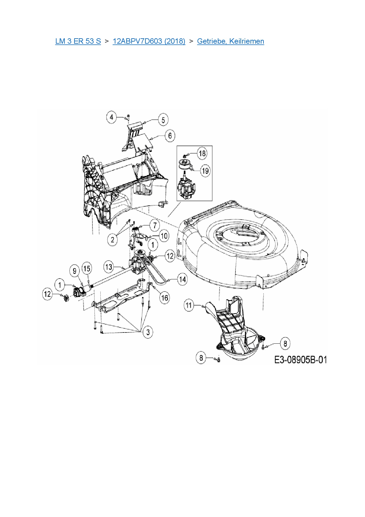 Ersatzteile für Motormäher mit Antrieb Cub Cadet LM 3 ER 53 S aus der Zeichnung Getriebe, Keilriemen: