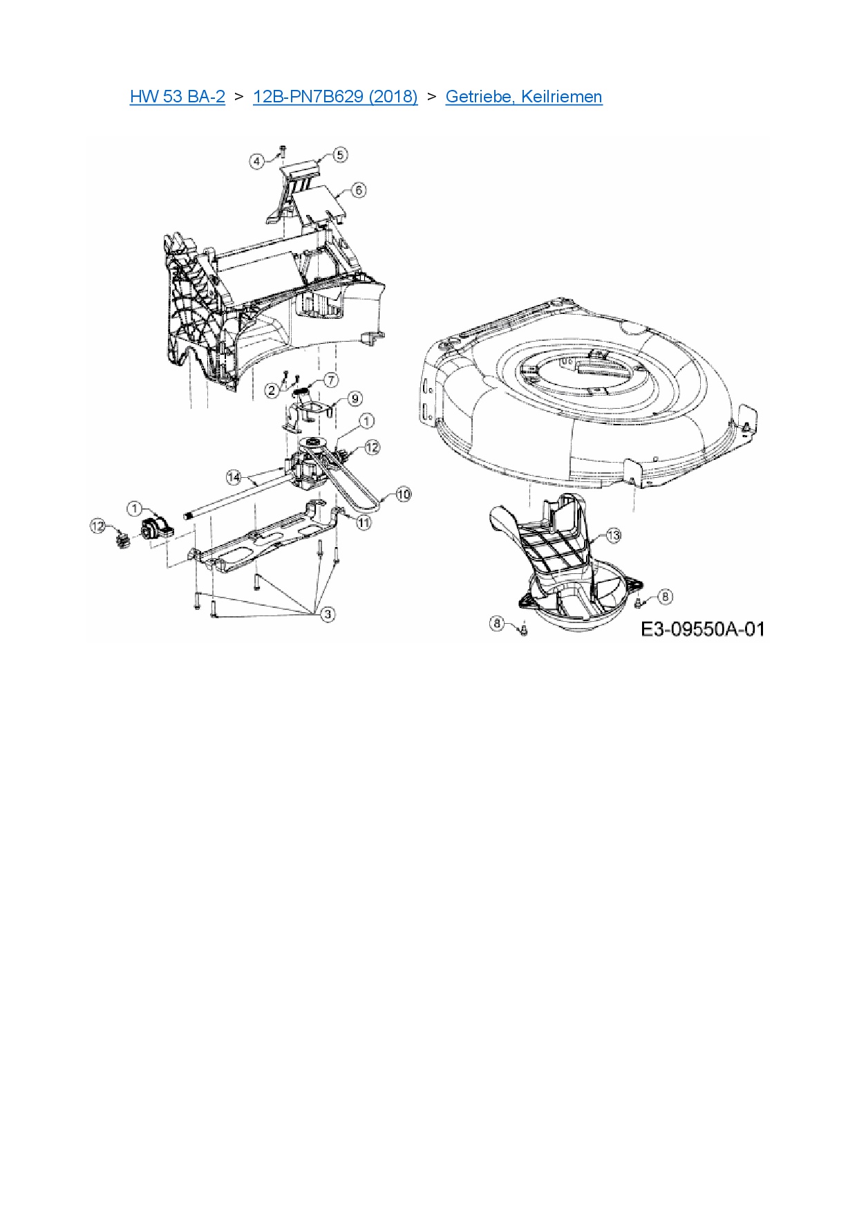 Ersatzteile für Motormäher mit Antrieb Mr. Gardener HW 53 BA-2 aus der Zeichnung Getriebe, Keilriemen: