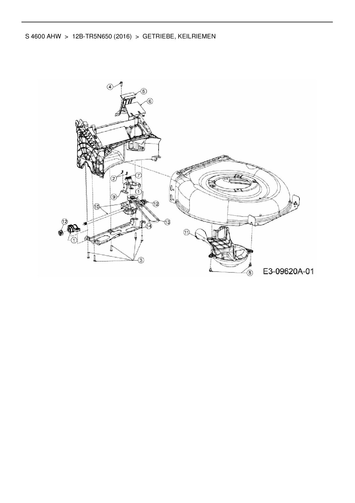 Ersatzteile für Motormäher mit Antrieb Wolf-Garten S 4600 AHW aus der Zeichnung Getriebe, Keilriemen: