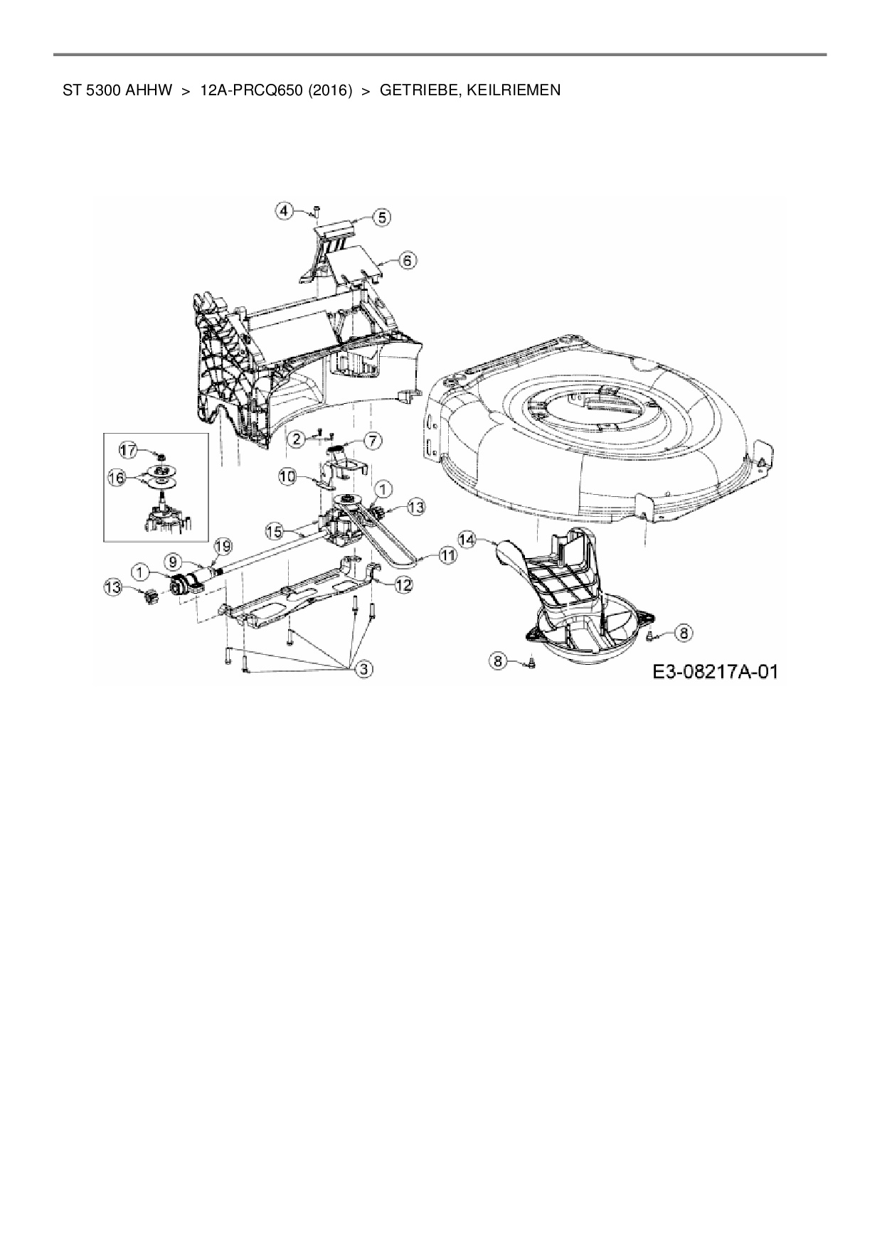 Ersatzteile für Motormäher mit Antrieb Wolf-Garten ST 5300 AHHW aus der Zeichnung Getriebe, Keilriemen: