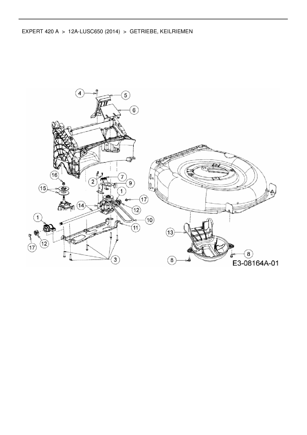 Ersatzteile für Motormäher mit Antrieb Wolf-Garten Expert Expert 420 A aus der Zeichnung Getriebe, Keilriemen: