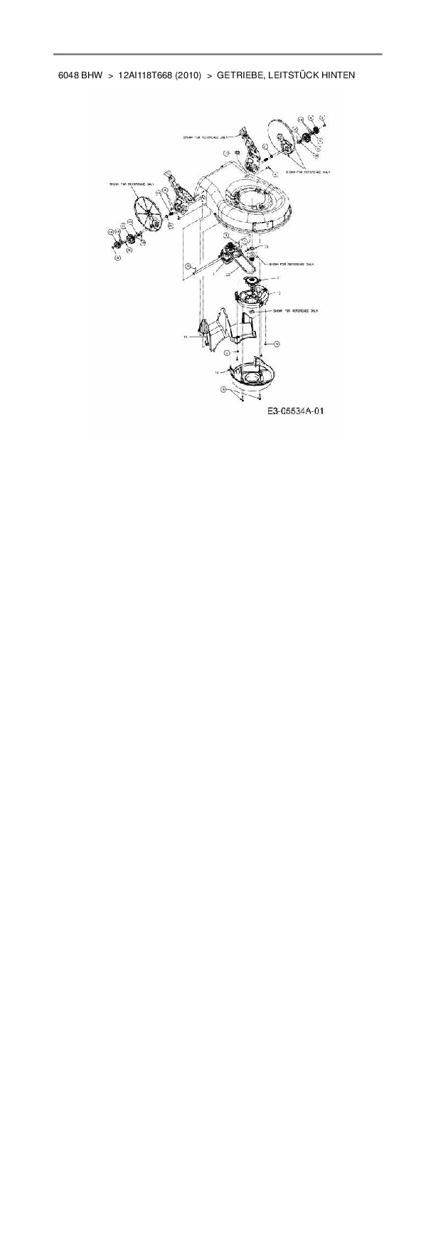 Ersatzteile für Motormäher mit Antrieb Mac Allister 6048 BHW aus der Zeichnung Getriebe, Leitstück hinten: