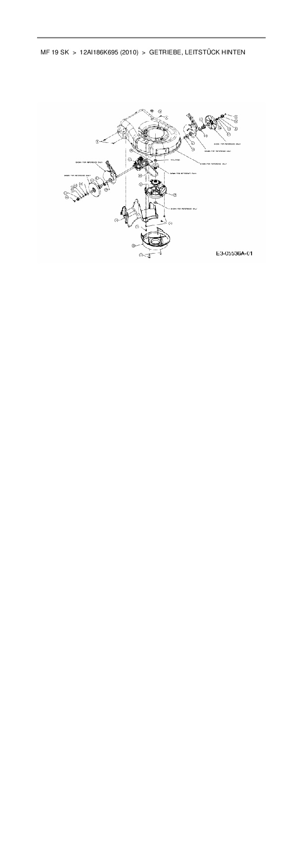 Ersatzteile für Motormäher mit Antrieb Massey Ferguson MF 19 SK aus der Zeichnung Getriebe, Leitstück hinten: