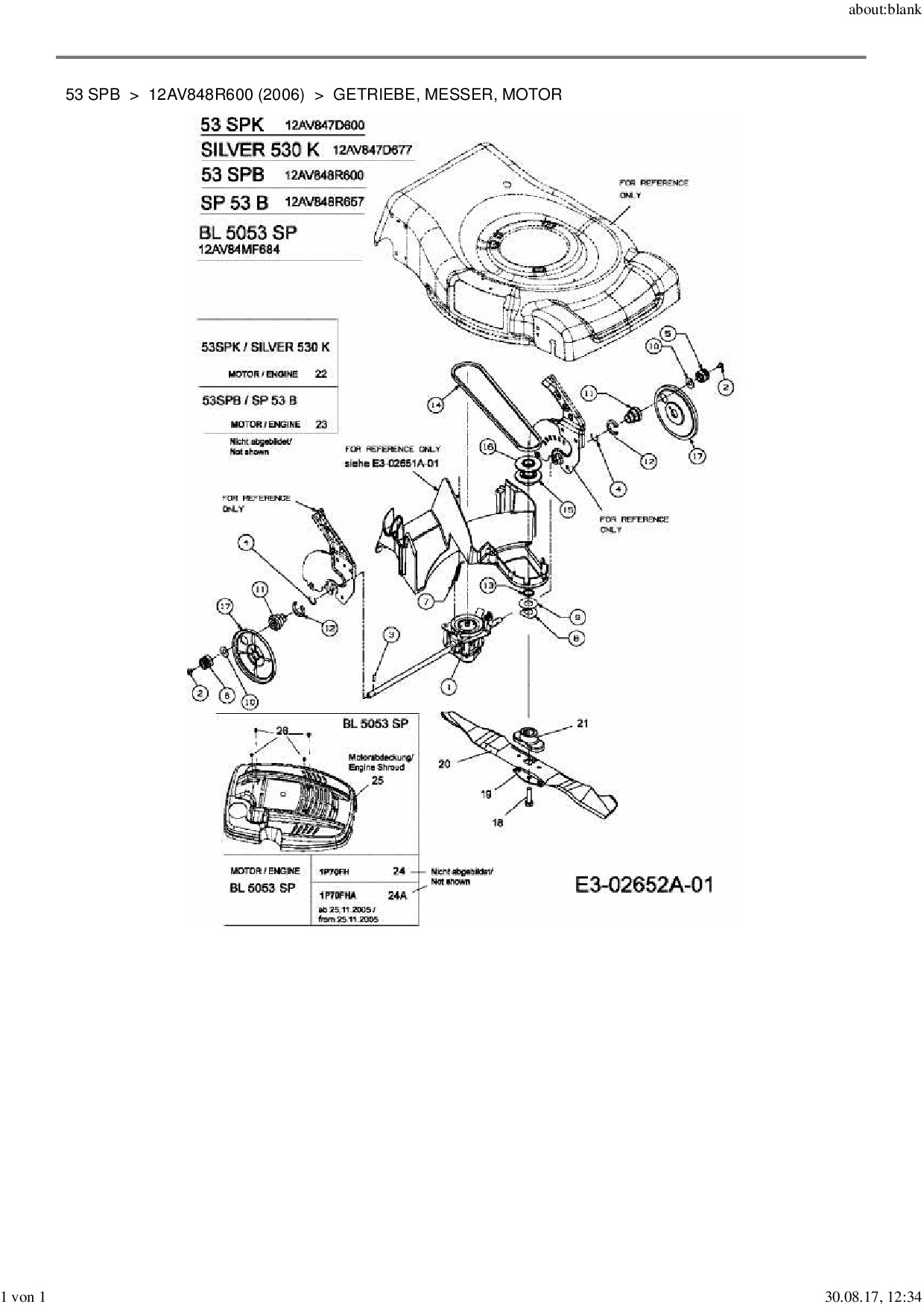Ersatzteile für Motormäher mit Antrieb MTD 53 SPB aus der Zeichnung Getriebe, Messer, Motor: