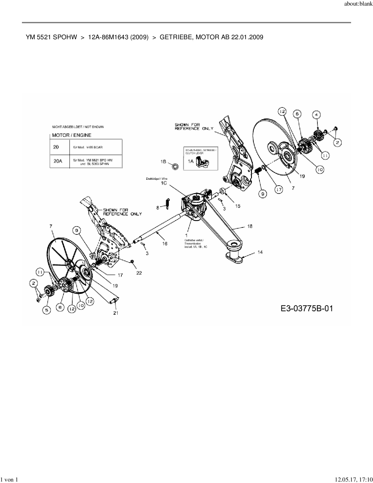 Ersatzteile für Motormäher mit Antrieb Yard-Man YM 5521 SPOHW aus der Zeichnung Getriebe, Motor ab 22.01.2009: