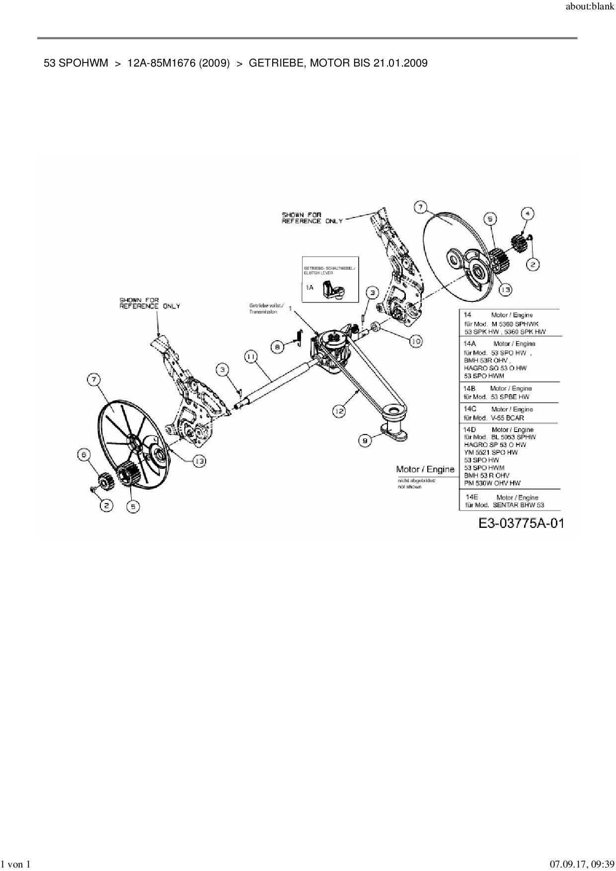 Download Ersatzteil-Zeichnung MTD 53 SPOHWM Zeichnung Getriebe, Motor bis 21.01.2009 (PDF-Format)