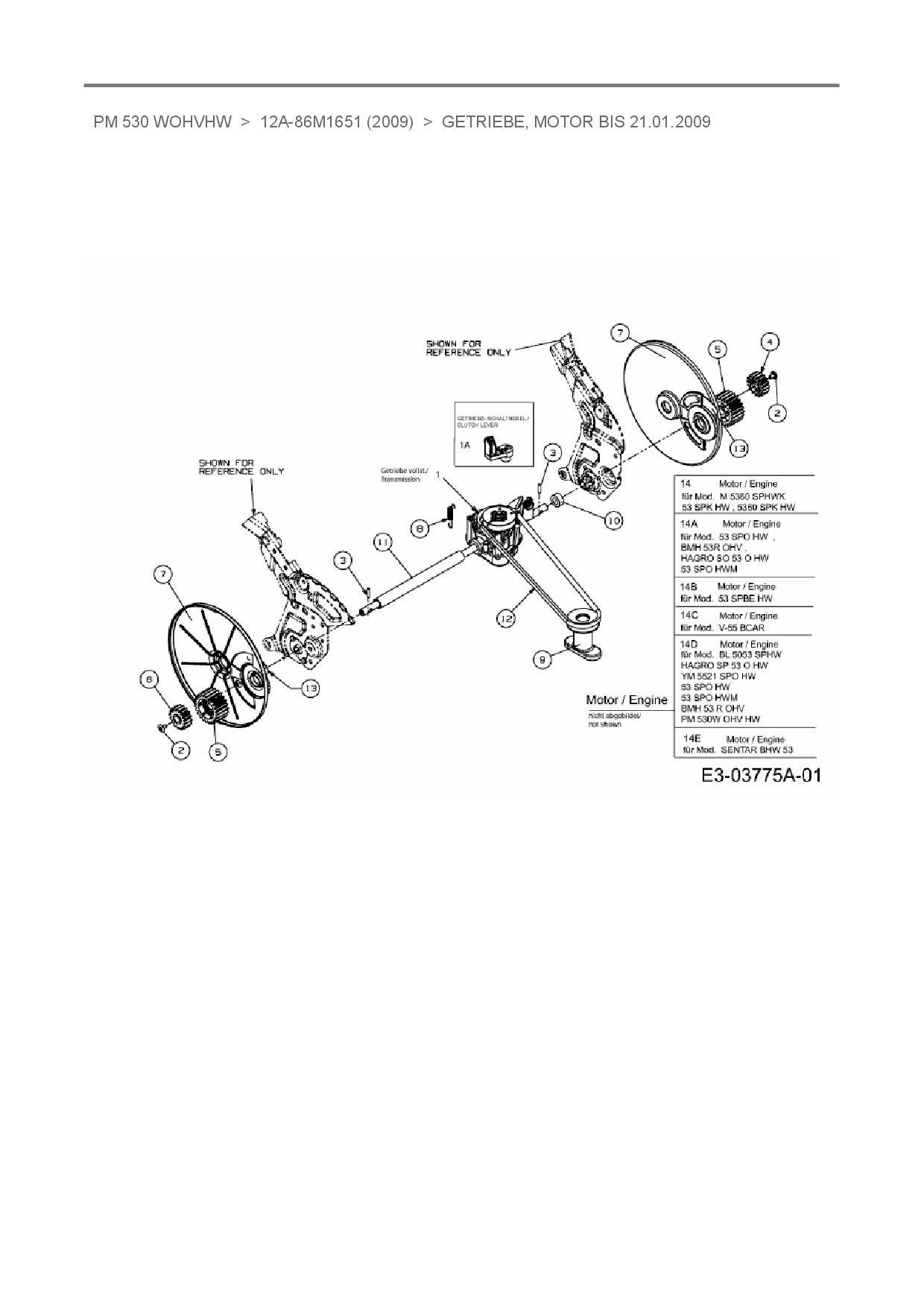 Ersatzteile für Motormäher mit Antrieb Terradena PM 530 WOHVHW aus der Zeichnung Getriebe, Motor bis 21.01.2009: