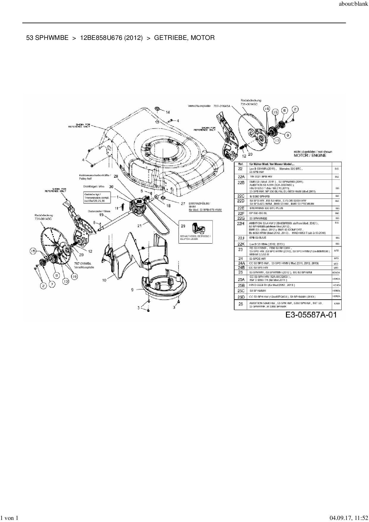 Ersatzteile für Motormäher mit Antrieb MTD 53 SPHWMBE aus der Zeichnung Getriebe, Motor: