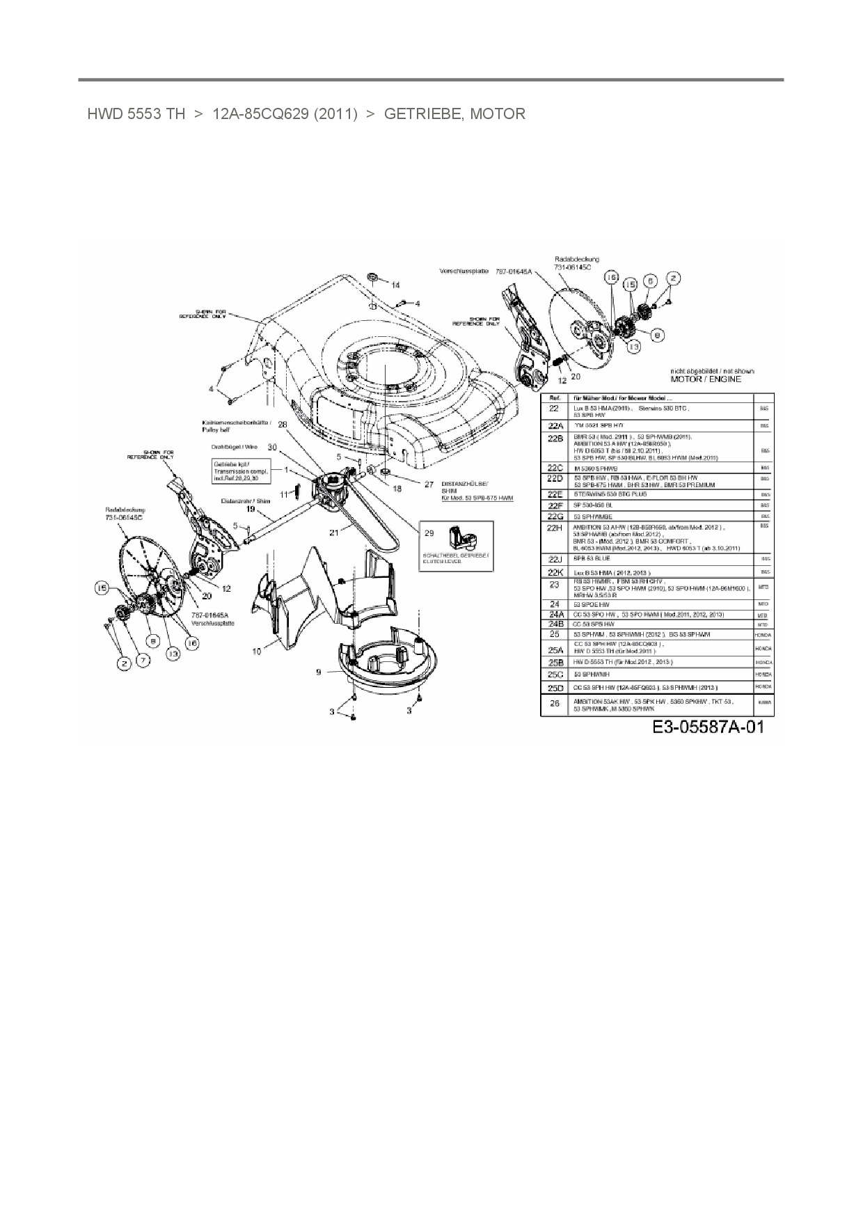 Ersatzteile für Motormäher mit Antrieb Mr. Gardener HWD 5553 TH aus der Zeichnung Getriebe, Motor: