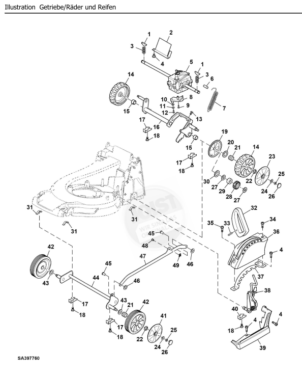 Zeichnung Sabo Rasenmäher Benzin-Rasenmäher 43-A ECONOMY EDV-NR. SA211020 Getriebe, Räder, Reifen: