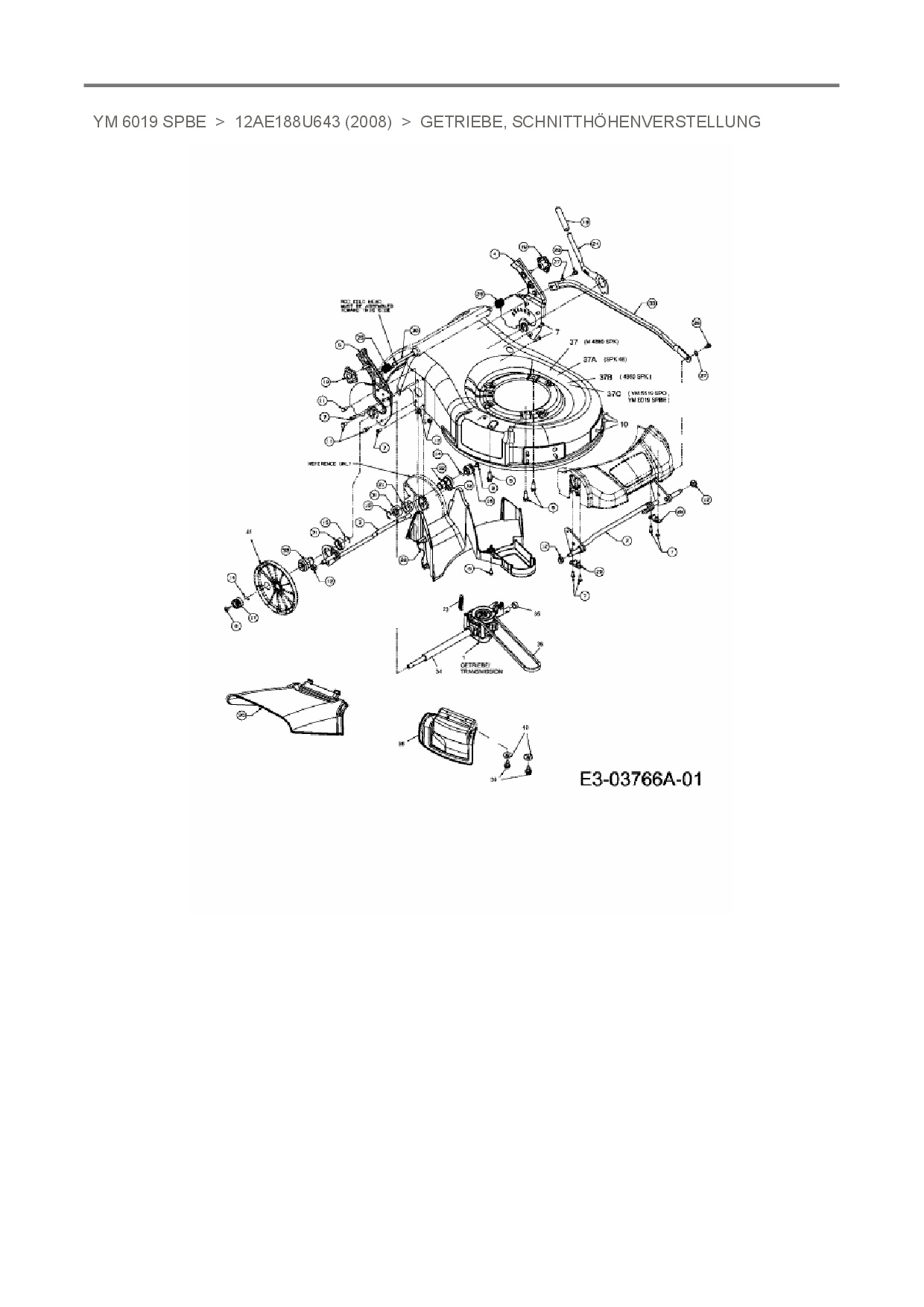 Ersatzteile für Motormäher mit Antrieb Yard-Man YM 6019 SPBE aus der Zeichnung Getriebe, Schnitthöhenverstellung: