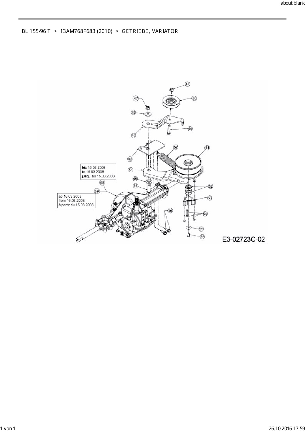 Ersatzteile für Rasentraktor Black-Line BL 155/96 T aus der Zeichnung Getriebe, Variator: