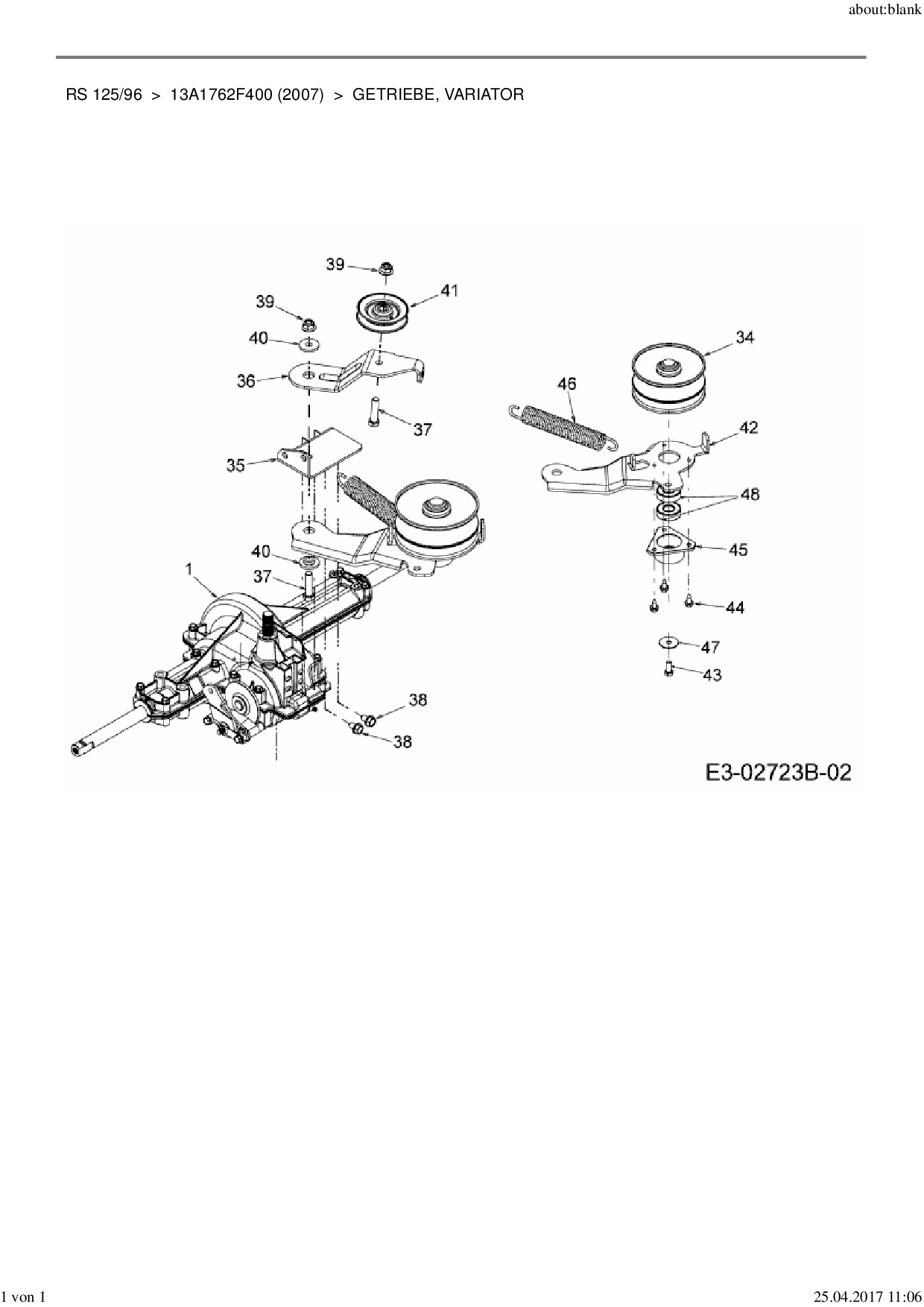 Ersatzteile für Rasentraktor MTD RS 125/96 aus der Zeichnung Getriebe, Variator: