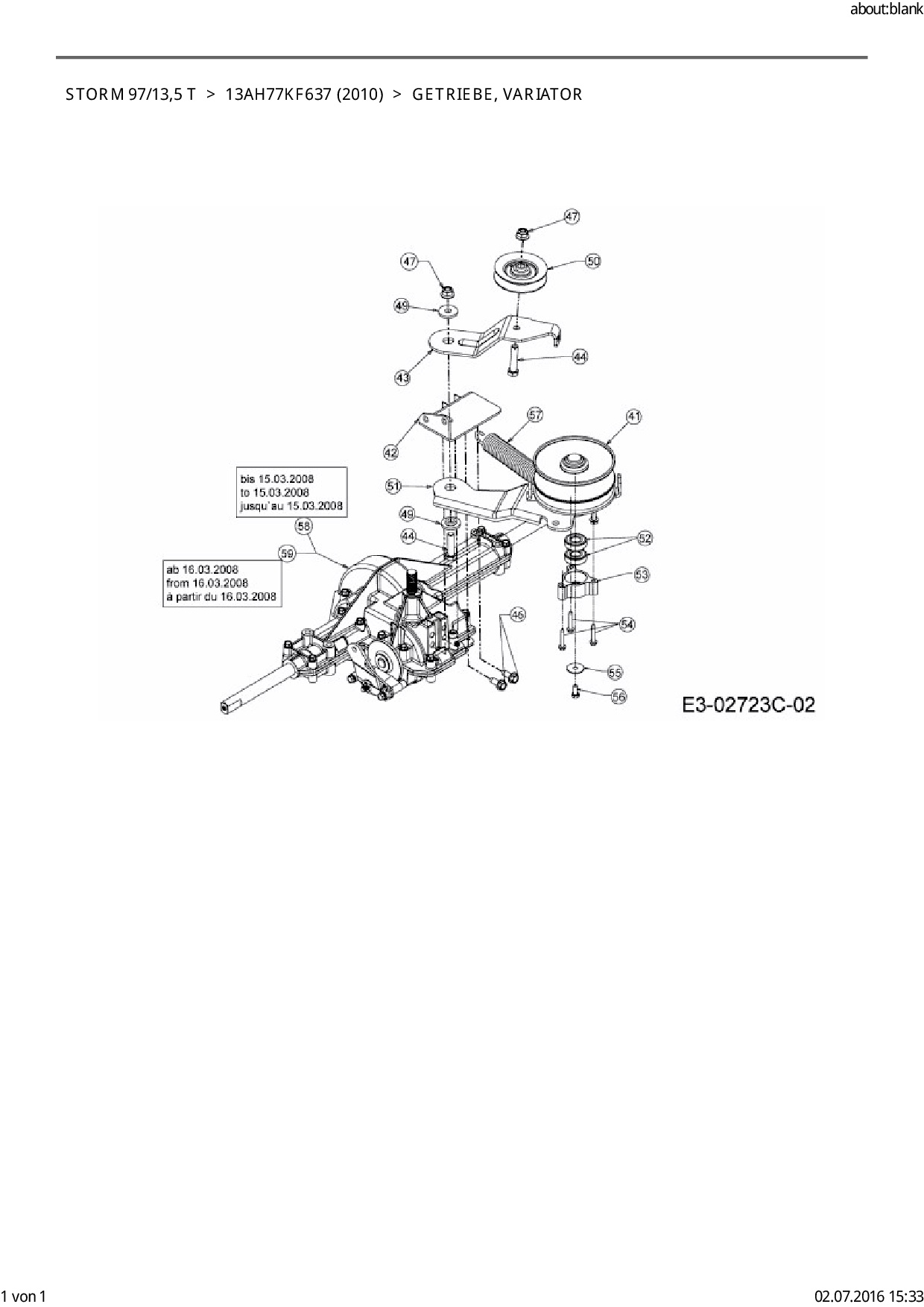 Ersatzteile für Rasentraktor EFCO Storm 97/13,5 T aus der Zeichnung Getriebe, Variator: