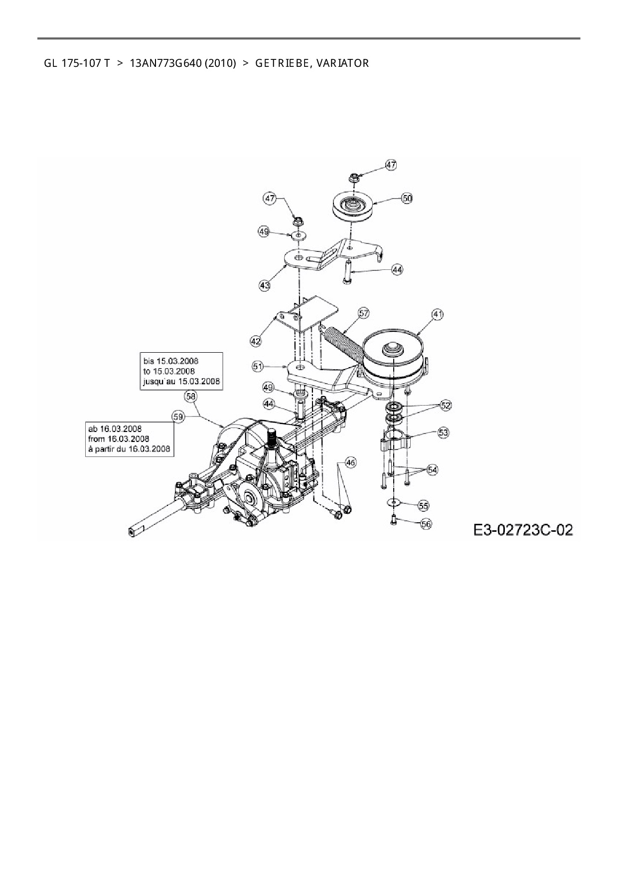 Ersatzteile für Rasentraktor Gartenland GL 175-107 T aus der Zeichnung Getriebe, Variator: