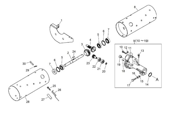 Zeichnung von ECHO Kombisystem PAS-2400 PAS-PT - PAS-Vertikutierer Getriebe, Vertikutierwalzen: