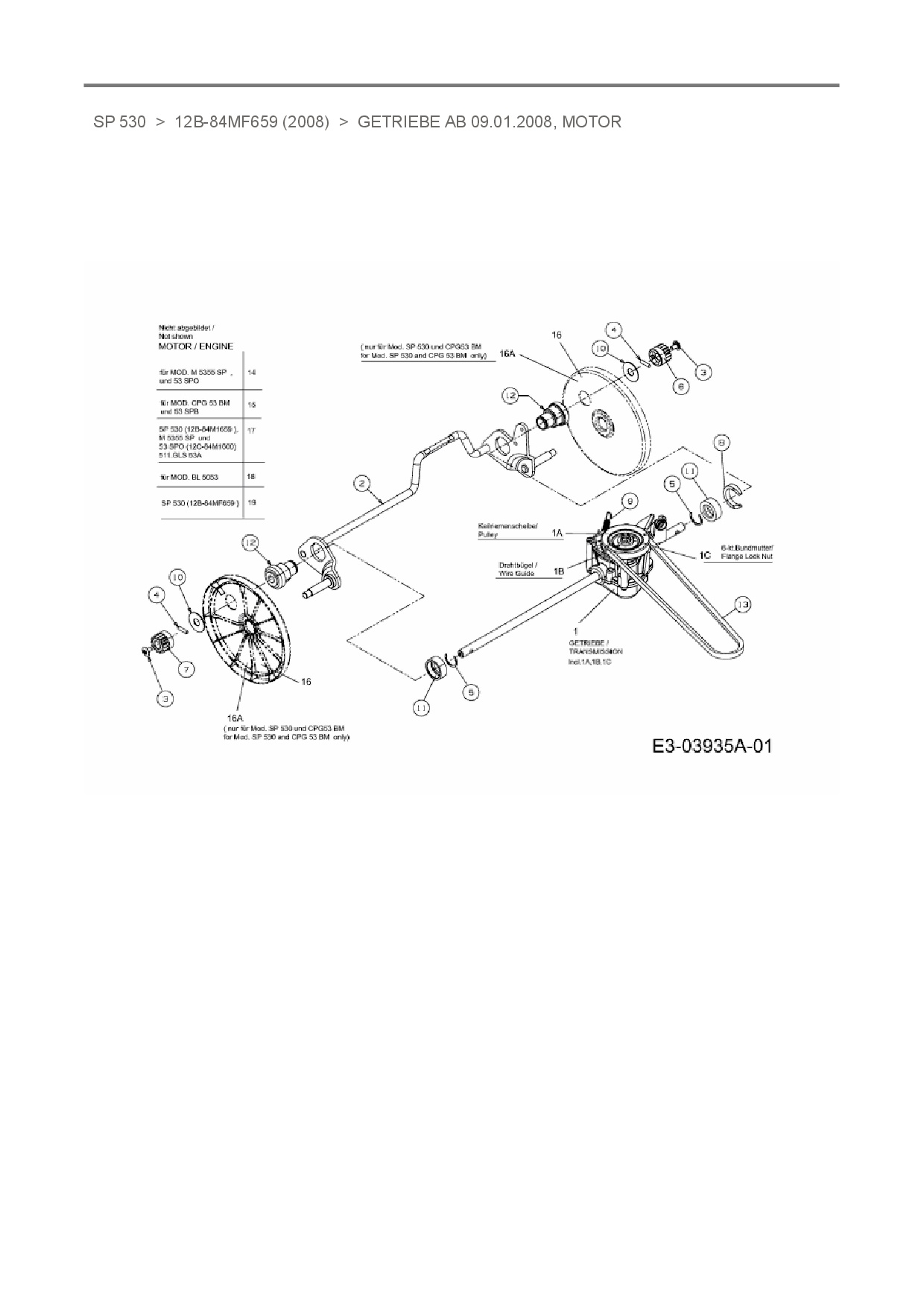 Ersatzteile für Motormäher mit Antrieb Mastercut SP 530 aus der Zeichnung Getriebe ab 09.01.2008, Motor: