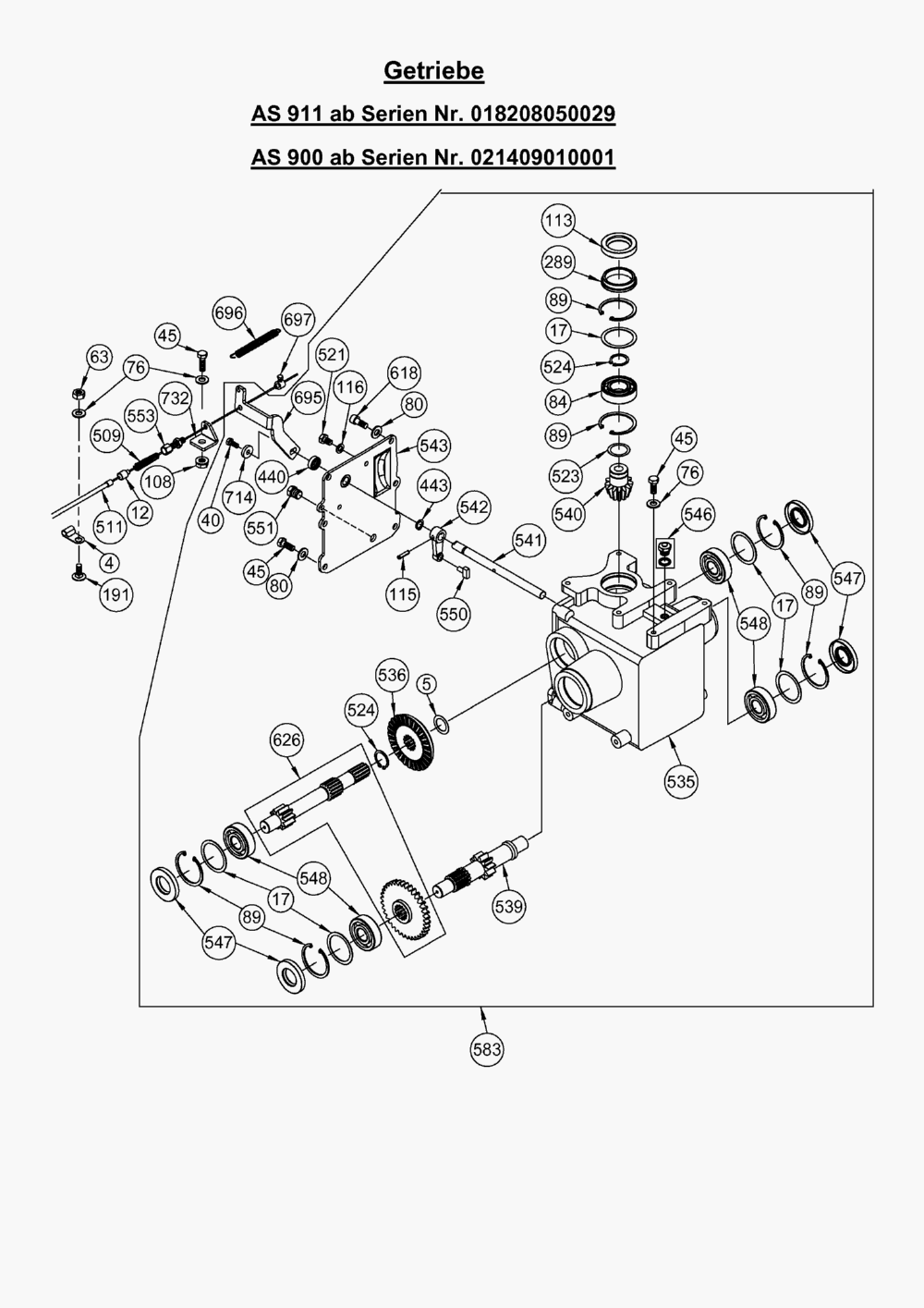 Hier finden Sie alle Ersatzteile von AS-Motor Aufsitzmäher AS 911, AS 915 Enduro ab FNr. 018211040029 aus dem Zeichnungsblatt Getriebe ab FNr. 018208050029: