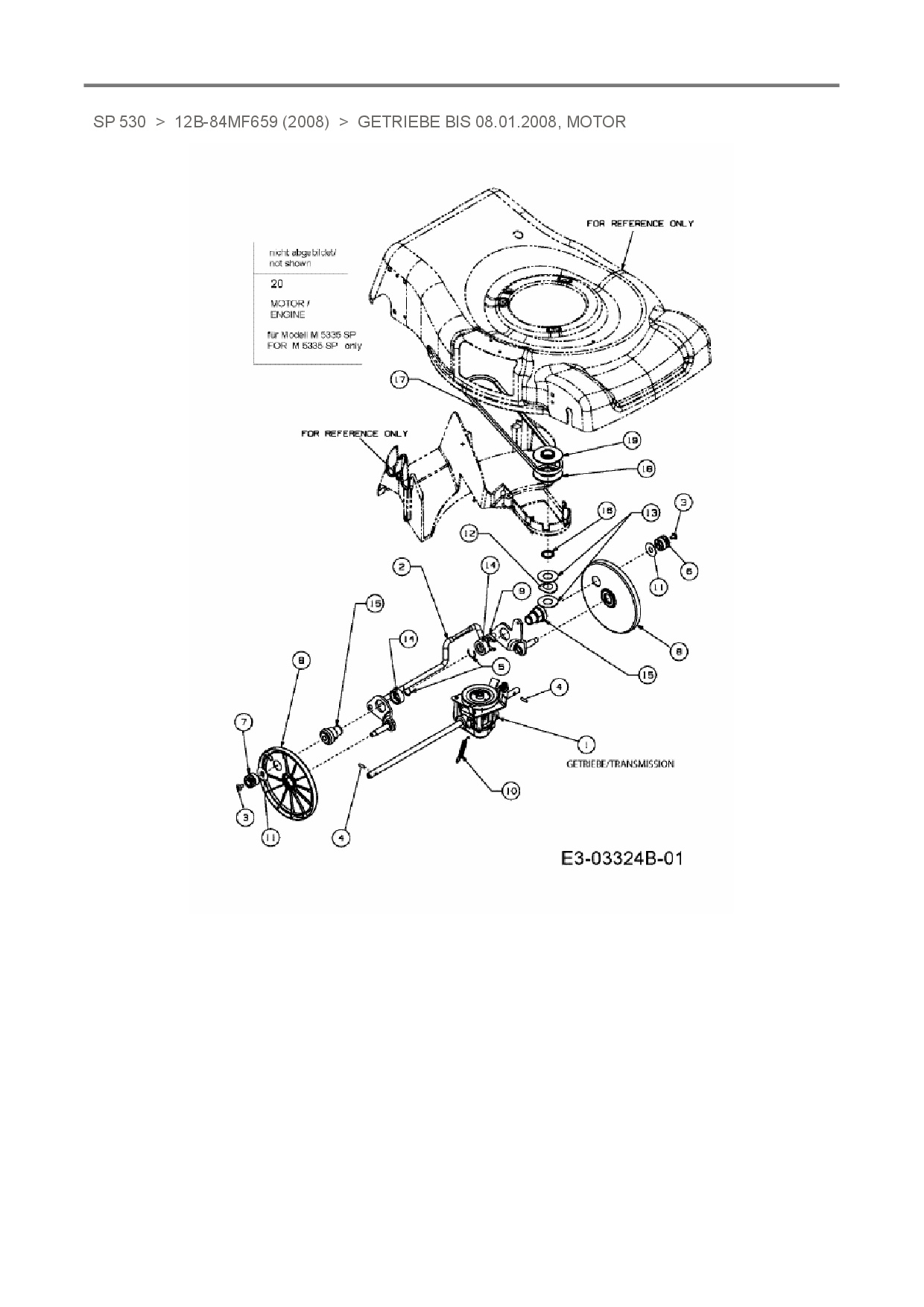 Ersatzteile für Motormäher mit Antrieb Mastercut SP 530 aus der Zeichnung Getriebe bis 08.01.2008, Motor: