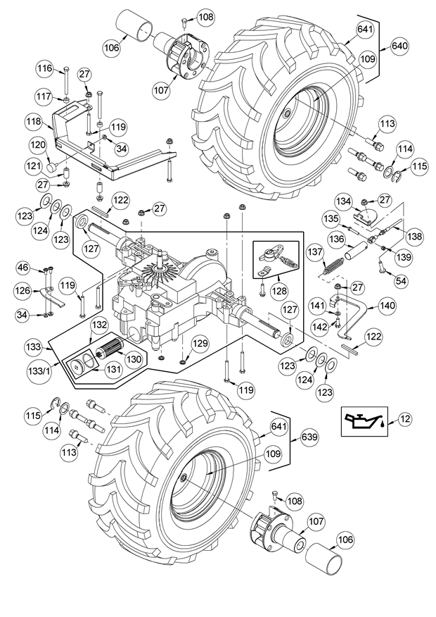 Getriebe hinten mit Rädern