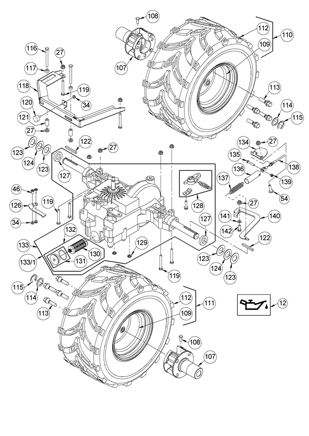 Getriebe hinten mit Rädern