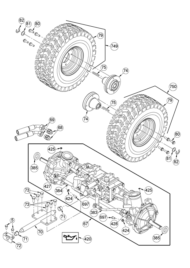 Getriebe vorn mit Rädern