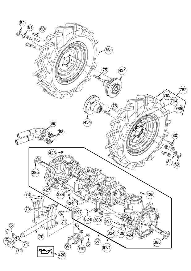 Getriebe vorn mit Rädern