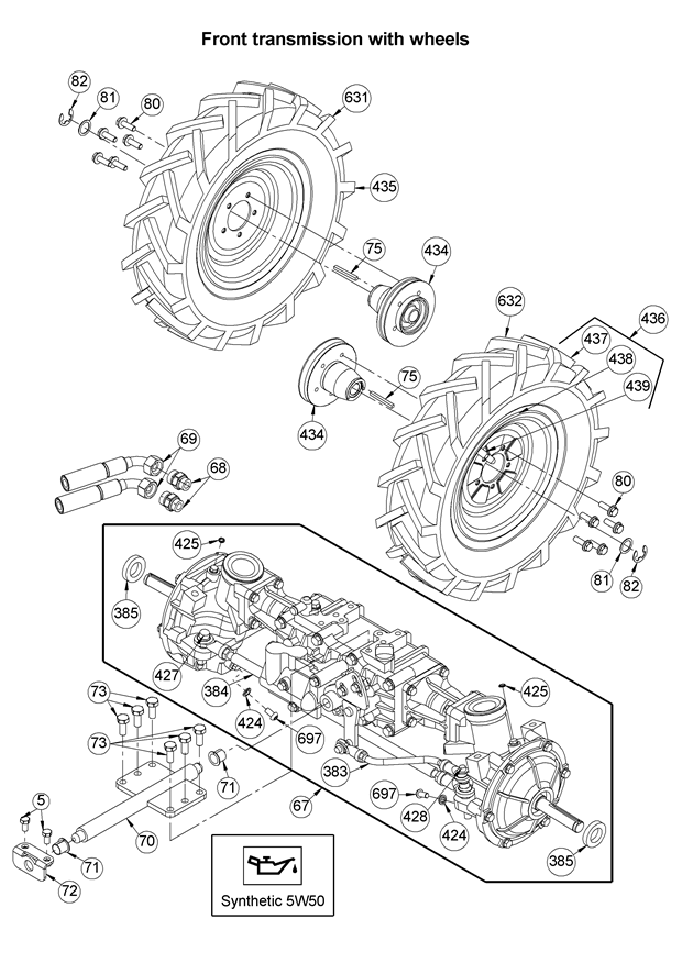 Getriebe vorn mit Rädern