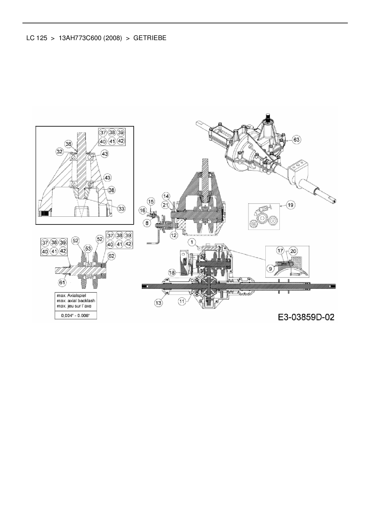 Ersatzteile für Rasentraktor MTD LC 125 aus der Zeichnung Getriebe:
