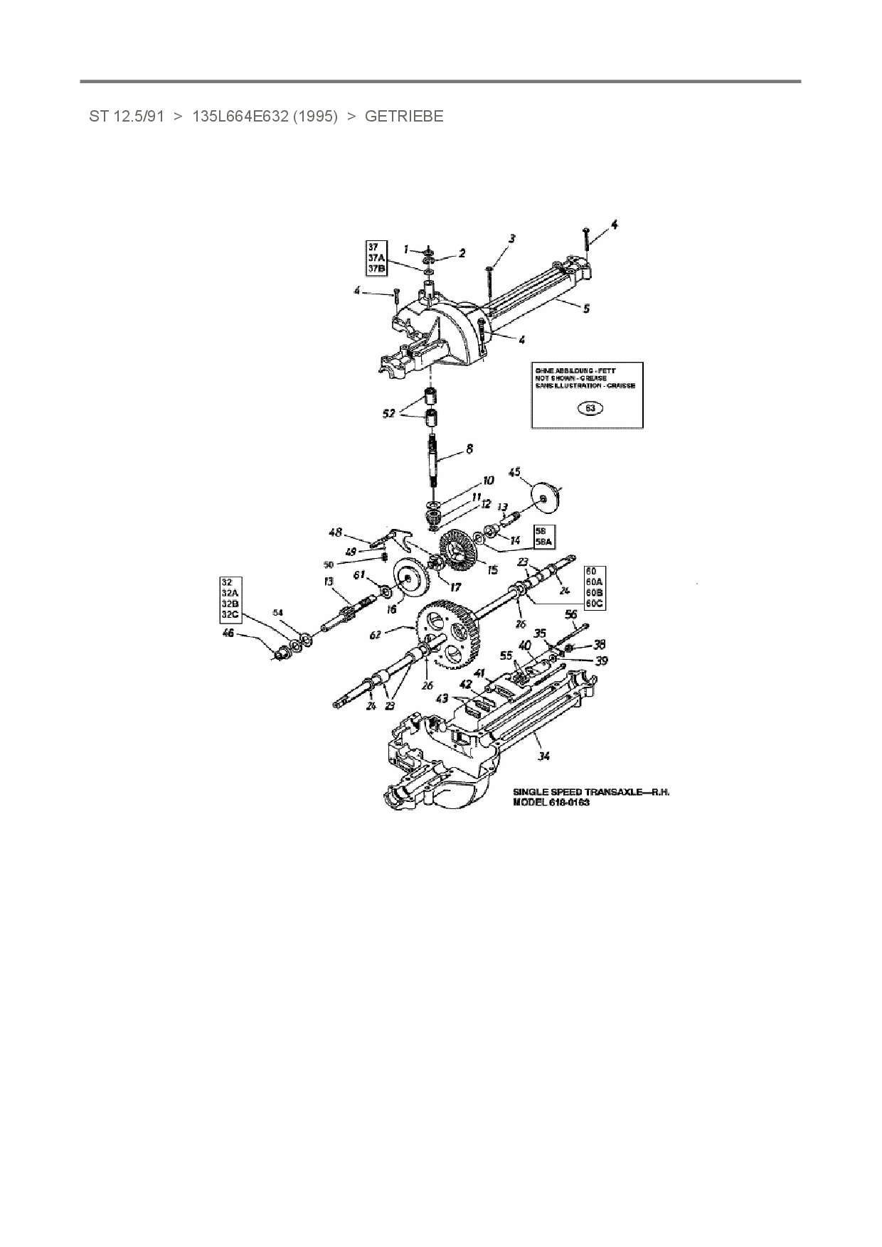 Zeichnung für Motec Rasentraktor ST 12.5/91 mit der Geräte-Artikelnr. 135L664E632 ab Baujahr 1995: