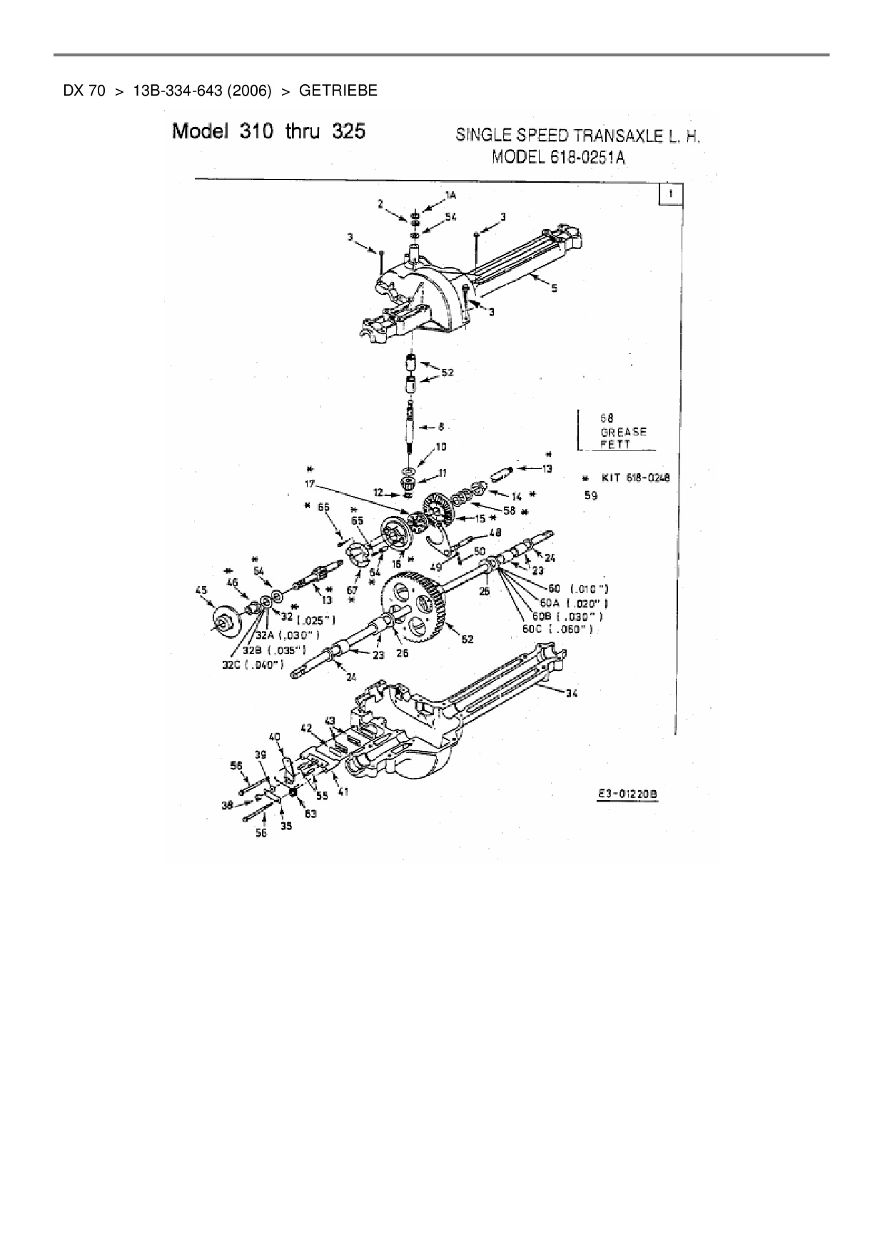 Ersatzteile für Rasentraktor Yard-Man DX 70 aus der Zeichnung Getriebe: