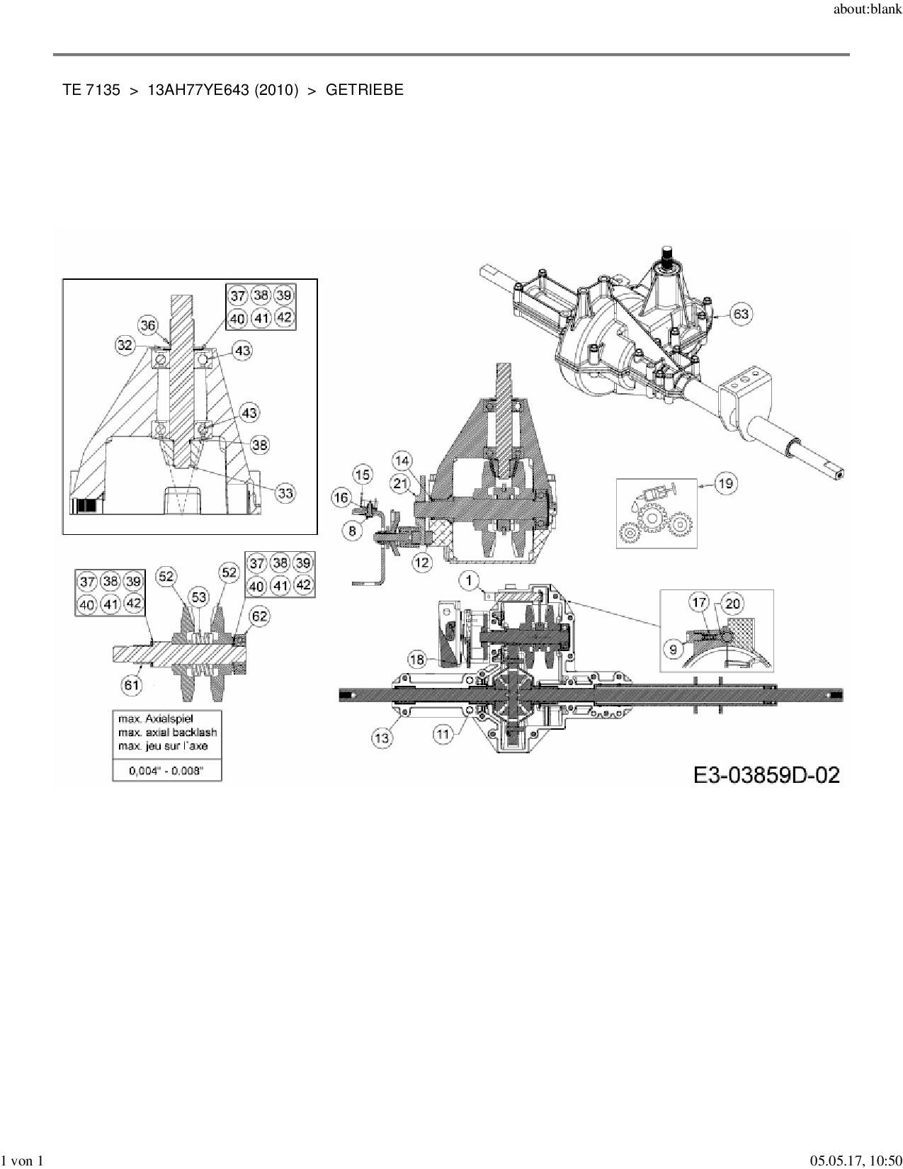 Ersatzteile für Rasentraktor Yard-Man TE 7135 aus der Zeichnung Getriebe:
