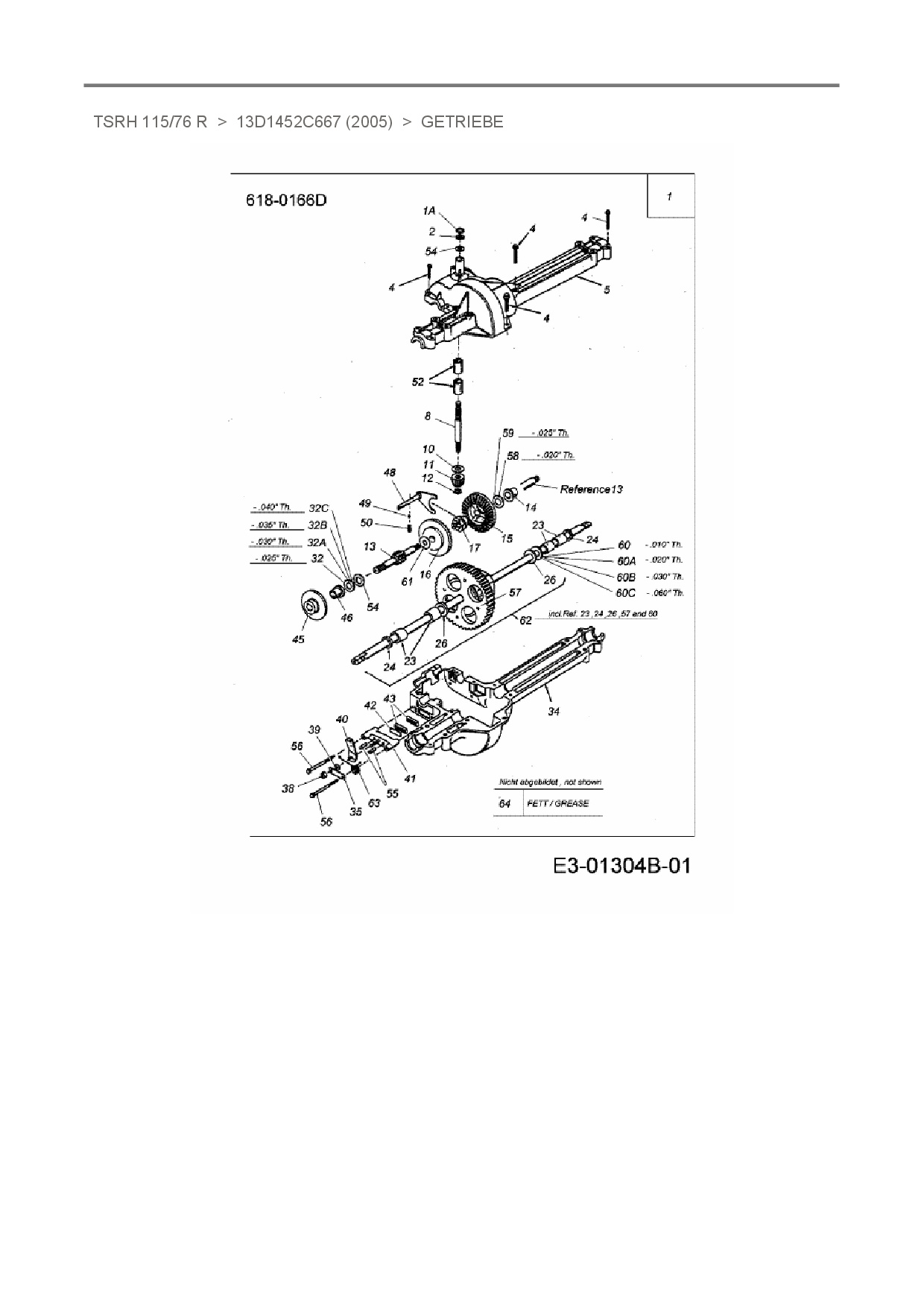 Zeichnung für Turbo-Silent Rasentraktor TSRH 115/76 R mit der Geräte-Artikelnr. 13D1452C667 ab Baujahr 2005: