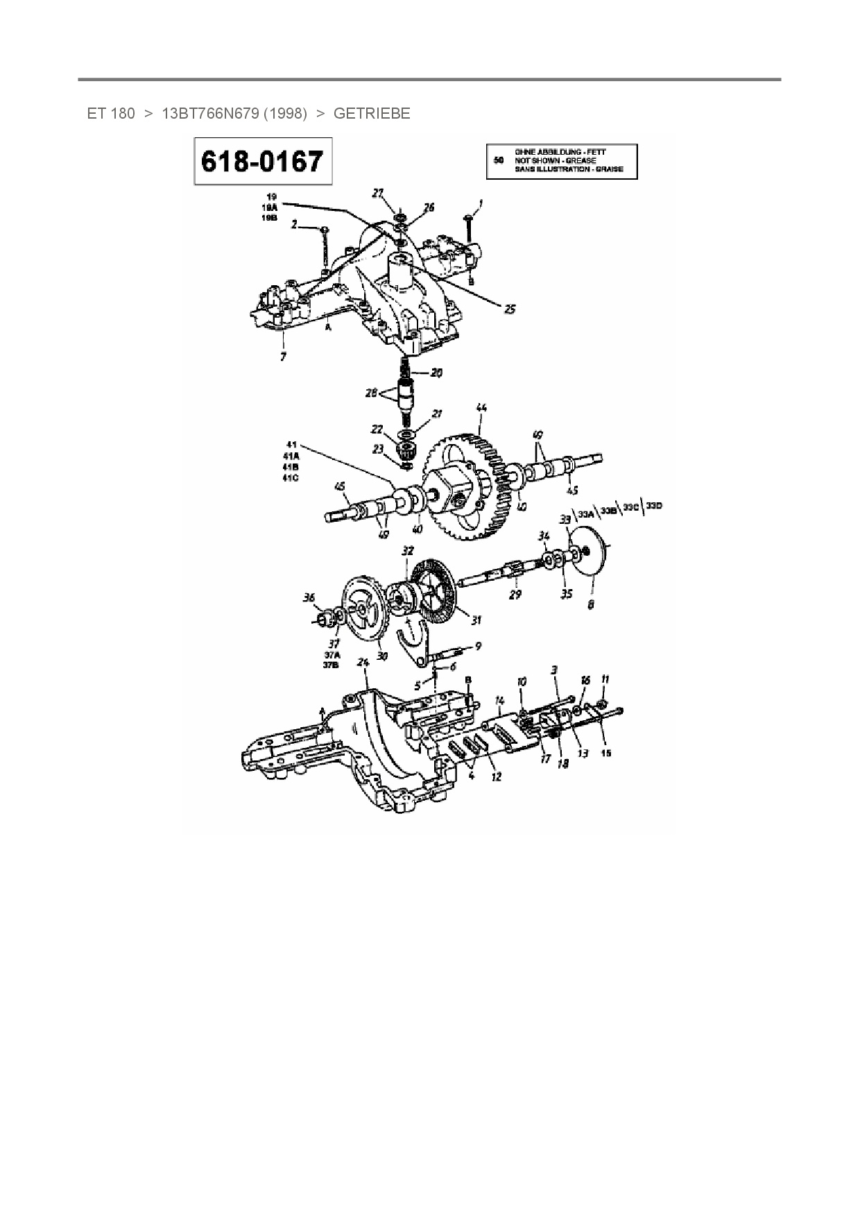 Zeichnung für White Rasentraktor ET 180 mit der Geräte-Artikelnr. 13BT766N679 ab Baujahr 1998:
