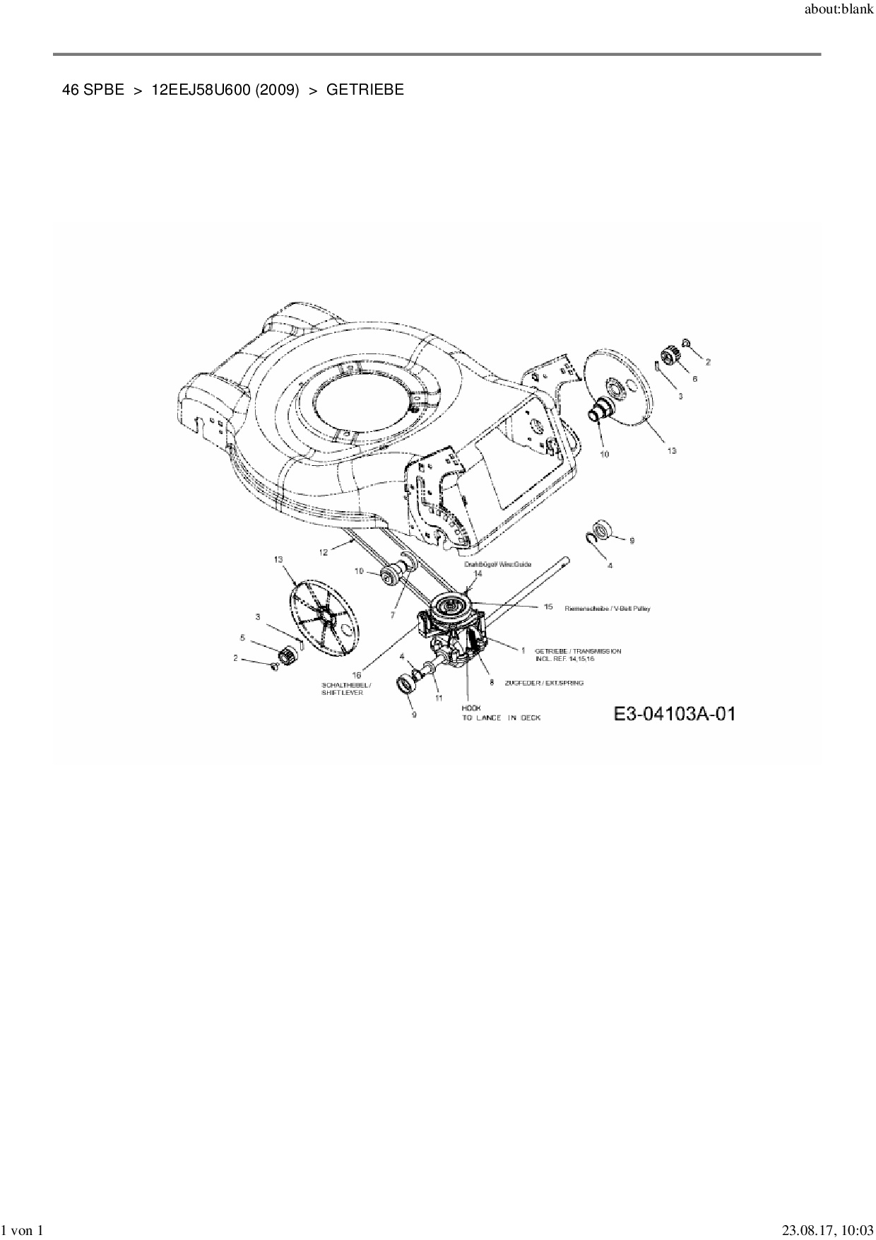 Download Ersatzteil-Zeichnung MTD 46 SPBE Zeichnung Getriebe (PDF-Format)