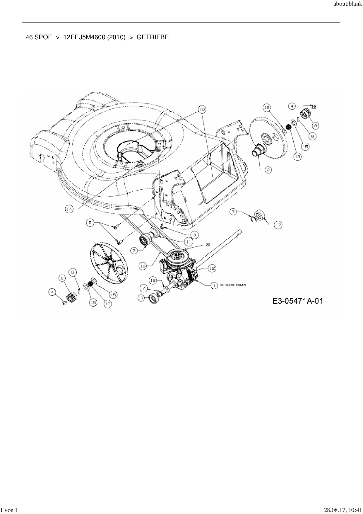 Ersatzteile für Motormäher mit Antrieb MTD 46 SPOE aus der Zeichnung Getriebe: