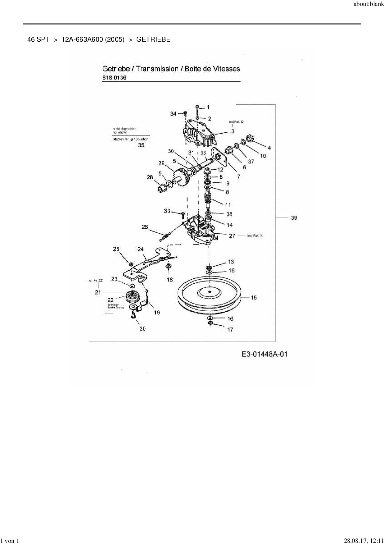 Ersatzteile für Motormäher mit Antrieb MTD 46 SPT aus der Zeichnung Getriebe: