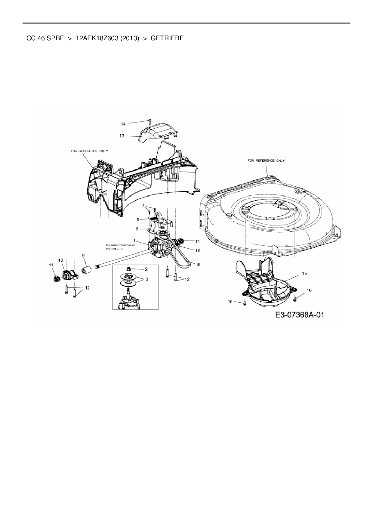 Zeichnung für Cub Cadet Motormäher mit Antrieb CC 46 SPBE mit der Geräte-Artikelnr. 12AEK18Z603 ab Baujahr 2013: