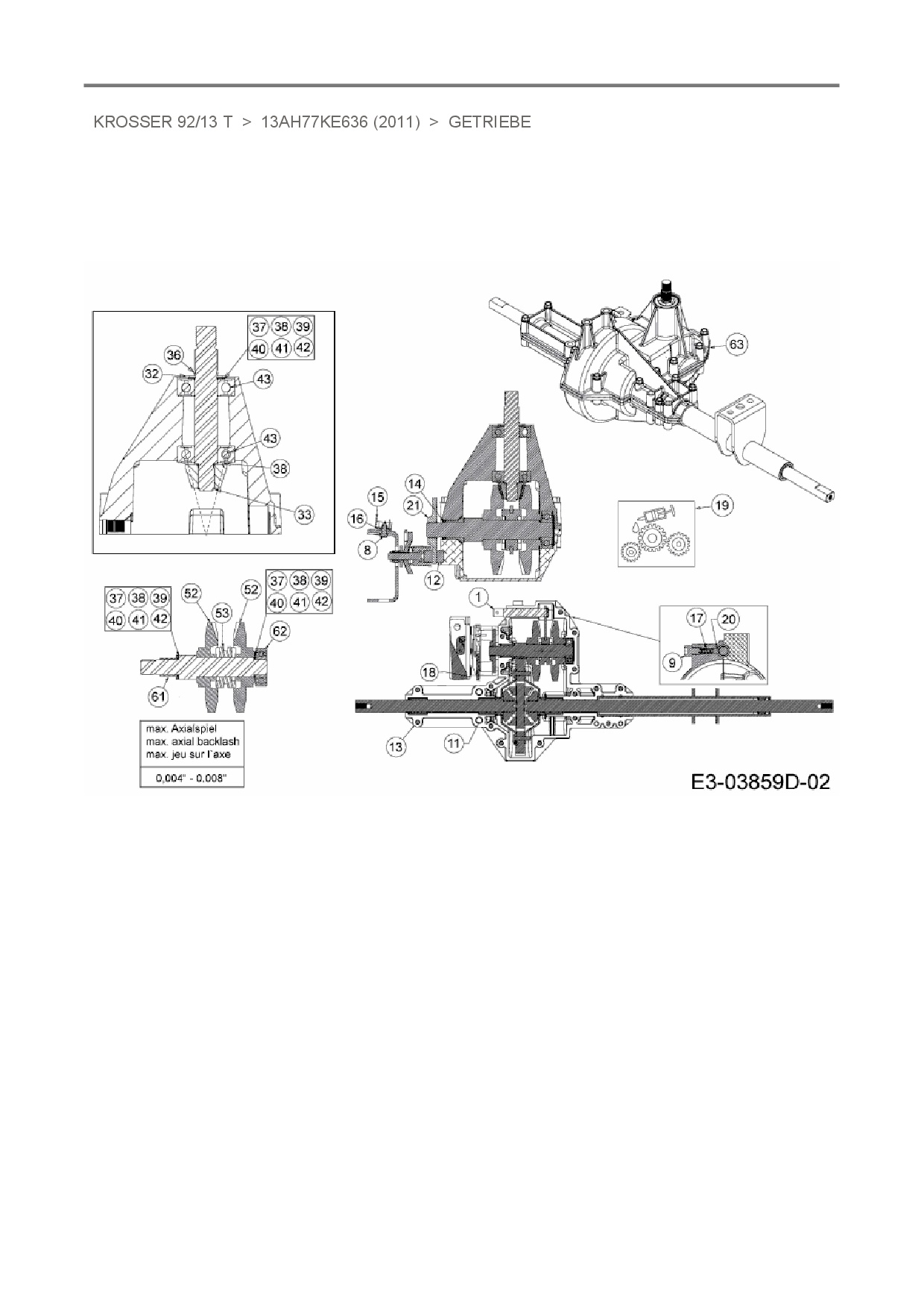 Download Ersatzteil-Zeichnung Oleo-Mac Krosser 92/13 T Zeichnung Getriebe (PDF-Format)