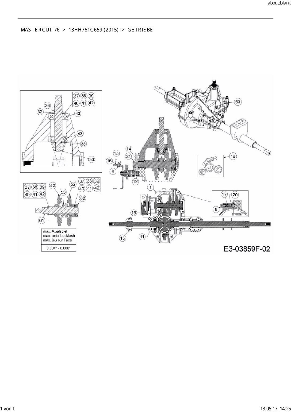Download Ersatzteil-Zeichnung Mastercut Mastercut 76 Zeichnung Getriebe (PDF-Format)