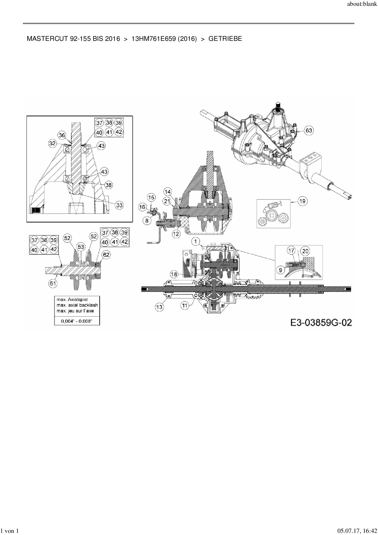 Download Ersatzteil-Zeichnung Mastercut Mastercut 92-155 bis 2016 Zeichnung Getriebe (PDF-Format)
