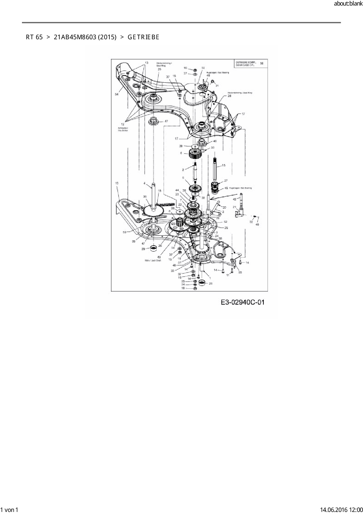 Ersatzteile für Motorhacke Cub Cadet RT 65 aus der Zeichnung Getriebe: