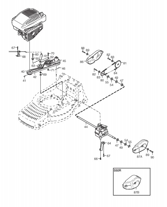 Zeichnung von Mountfield Benzinrasenmäher ab 2003 550 R (Geräte Nr.: 12-9704-78):