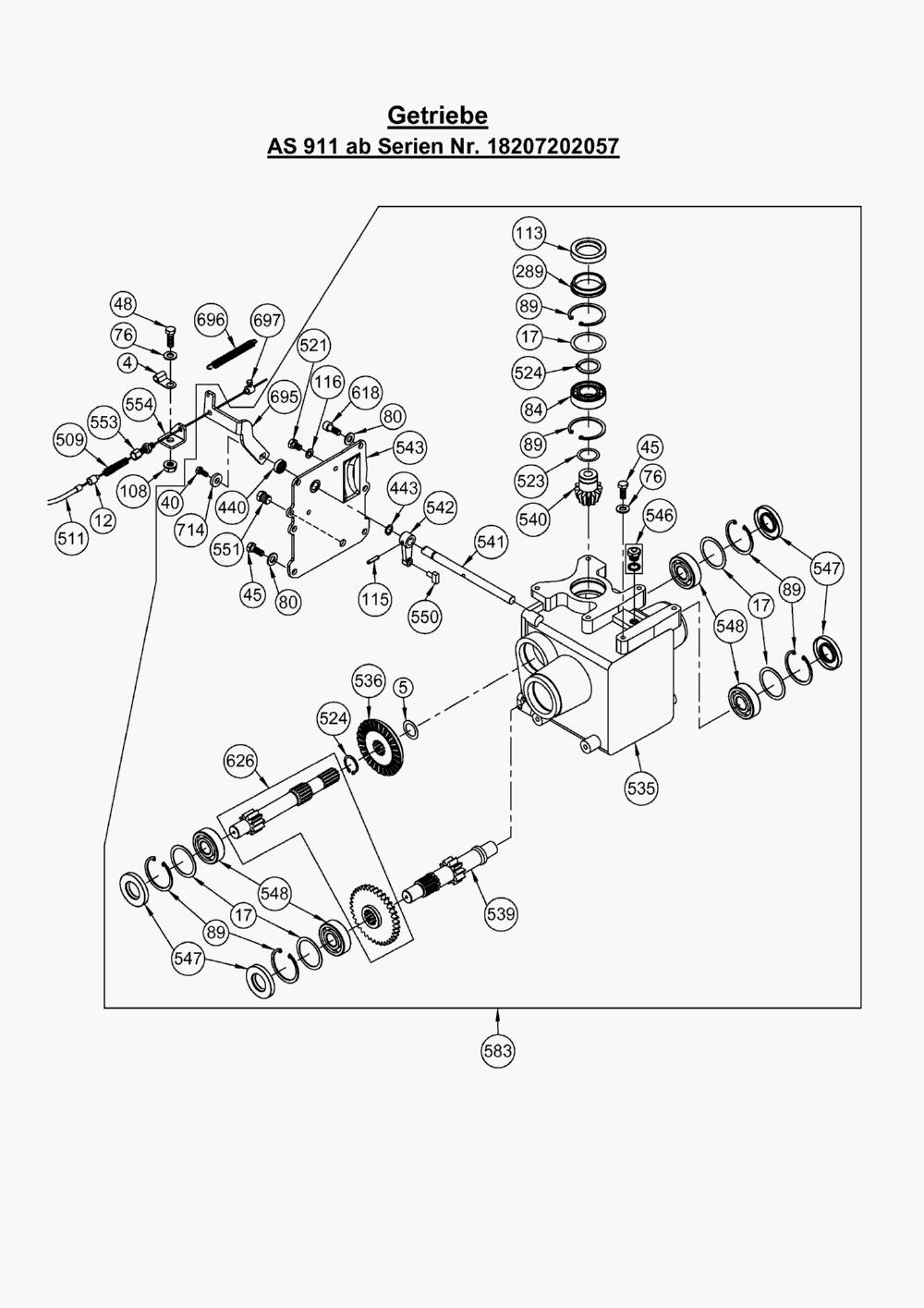 Hier finden Sie alle Ersatzteile von AS-Motor Aufsitzmäher AS 911, AS 915 Enduro ab FNr. 018208020001 aus dem Zeichnungsblatt Getriebe: