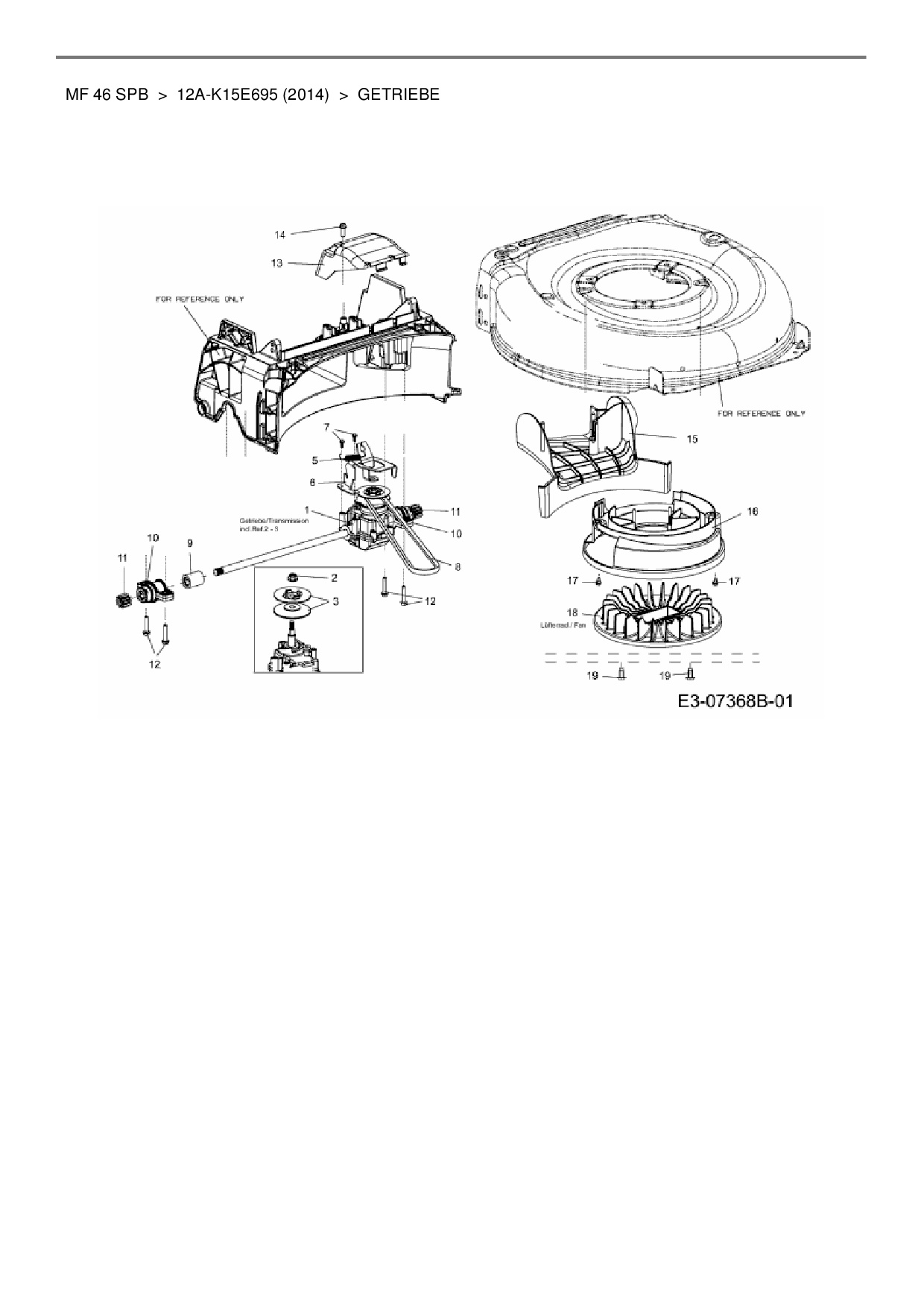 Die Ersatzteil-Zeichnung für Motormäher mit Antrieb Massey Ferguson MF 46 SPB als Download: