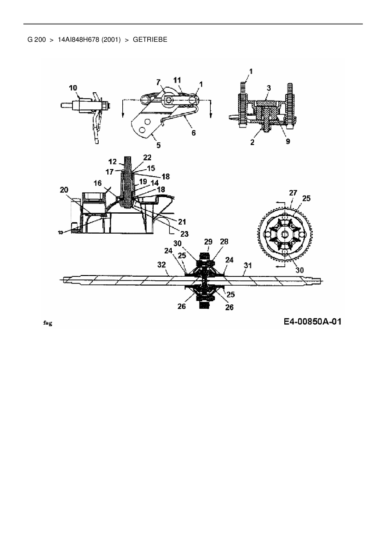Download Ersatzteil-Zeichnung MTD G 200 Zeichnung Getriebe (PDF-Format)