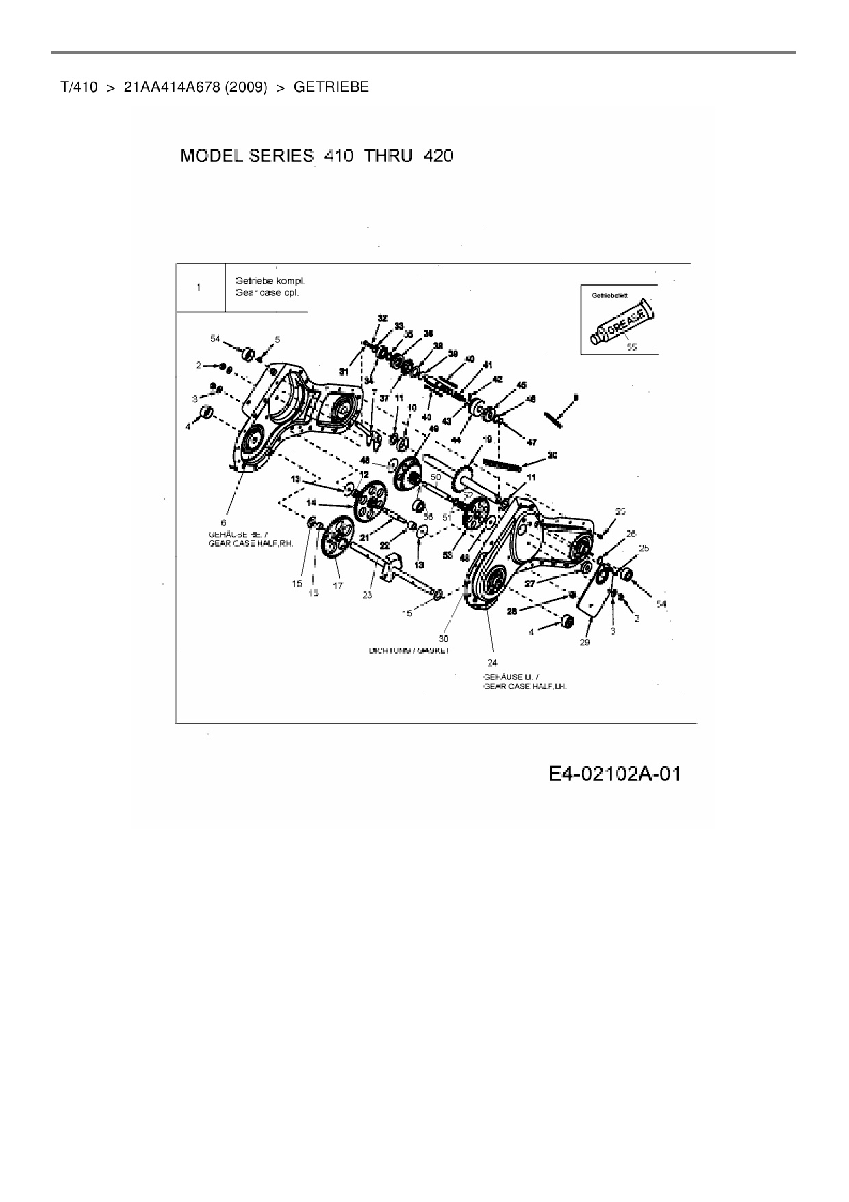 Download Ersatzteil-Zeichnung MTD T/410 Zeichnung Getriebe (PDF-Format)