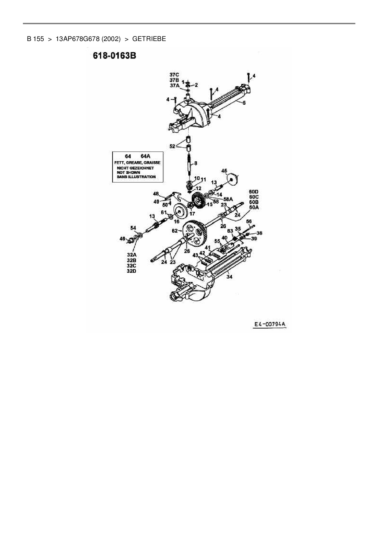 Ersatzteile für Rasentraktor MTD B 155 aus der Zeichnung Getriebe: