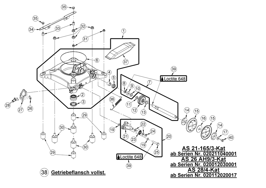 Hier finden Sie alle Ersatzteile von AS-Motor Allmäher AS 21 2T und AS 21-165/3-Kat ab FNr. 020211040001 aus dem Zeichnungsblatt Getriebeflansch vollst.: